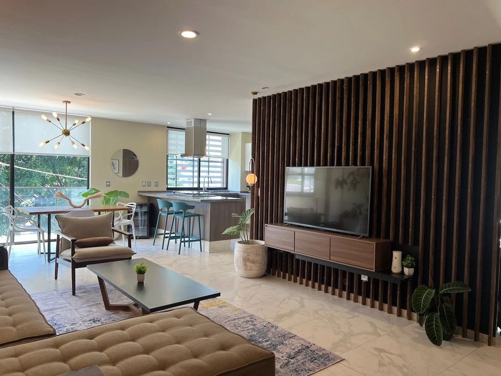 Roof Garden con vistas de 360°, business room, lobby con seguridad, gimnasio, Cajón estacionamiento gratuito y cajones extra con costo bajo por día adicional, elevadores.