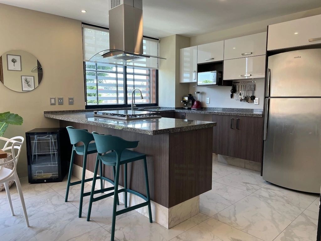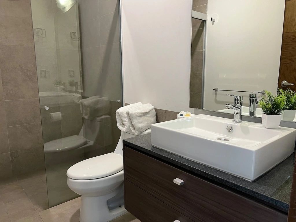 3 habitaciones (vistas a la zona financiera), 4 baños (1 de servicio), área de trabajo/estudio, 200 m², 3er piso para privacidad, balcón con vista panorámica.