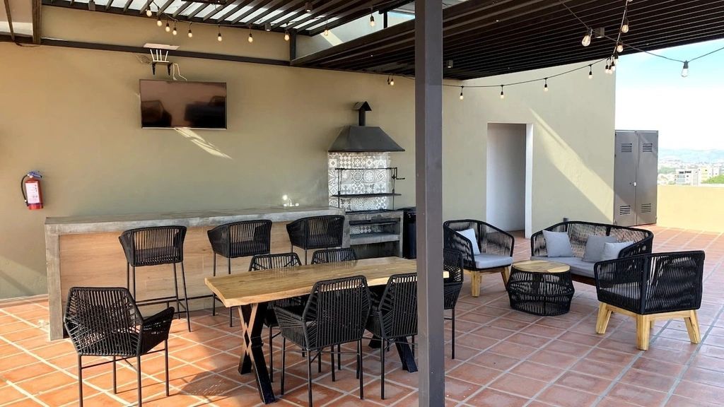 Roof Garden con vistas de 360°, business room, lobby con seguridad, gimnasio, 1 estacionamiento gratuito, estacionamiento extra con costo adicional, elevadores.