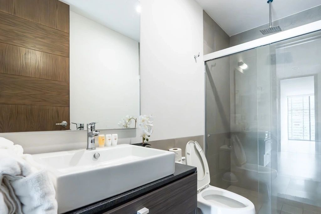 3 habitaciones (vistas a la zona financiera), 4 baños (1 de servicio), área de trabajo/estudio, 200 m², 3er piso para privacidad, balcón con vista panorámica.