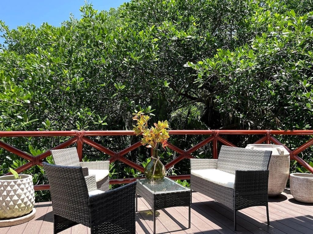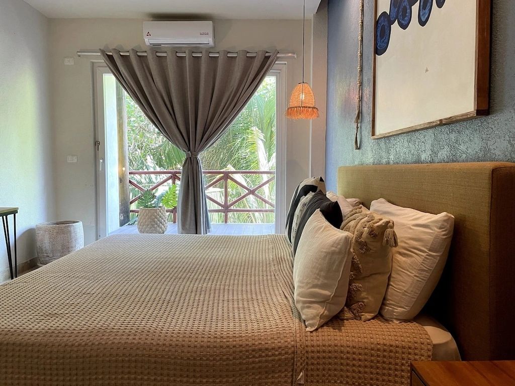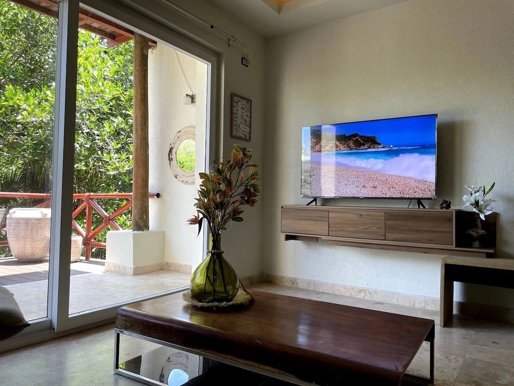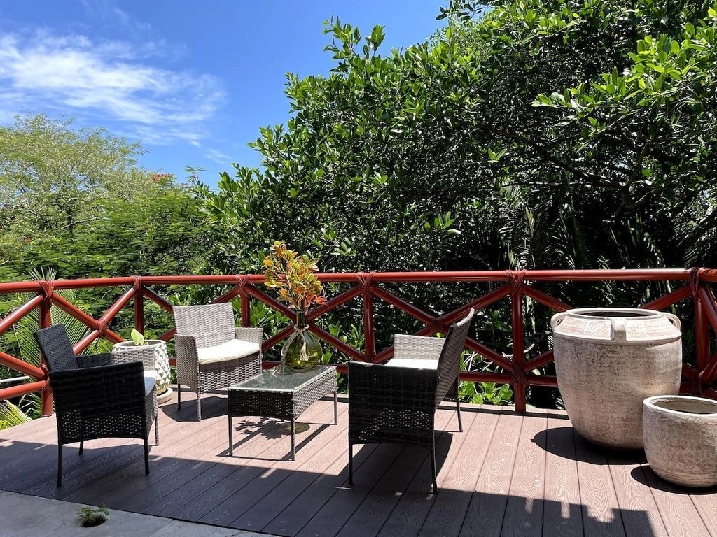 Just 5-minute walk to beach, 15 minutes to town - close to everything, yet blissfully secluded. Daily Soft Cleaning* (6 days/week) keeps your oasis fresh. Stairs lead to this elevated paradise – your daily dose of jungle adventure!